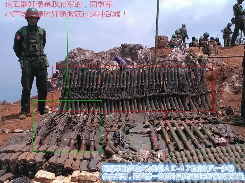 昨天政府军官方报导了南天门山5月15日的战报,政府军攻克了同盟军的一个据点,同时缴获了大批物资。不少专业人士认为,政府军缴获同盟军武器的图片疑似造假,本站经多方努力联系到同盟军某营干部,该领导对此事给予否认。对于政府军公布的“战利品”,也引起网友的一片质疑声。下图中的重机枪和轻机枪并不是同盟军的,在小芦场大捷时同盟军就有缴获过政府军的此类枪,因为有的子弹型号与同盟军常用的通用枪枪子弹配不上,所以没有全部装备在一线战场。