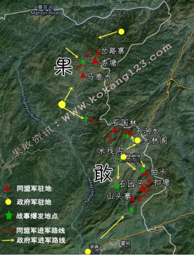 今天早上七点许,扣塘战事再次打响,政府军对扣塘山周边驻地的大干塘、山头寨、帕卡等据点,发动了至少5次以上的冲锋,但政府军尚未能攻破同盟军的任何一道防线。在政府军的重炮轰击下,己造成一名士兵重伤,现己转至后方医院治疗。同时,西山区一线的同盟军也遭到政府军的重炮轰击。双方在马鹿水至岔路寨的杏塘路一带激战,缅甸政府军投入两百人以上兵力,企图阻断果敢联军某部从新平街通往中国边界171部的路段。果敢联军方面,投入战斗的是果敢同盟军和若开民族解放军。同盟军前线战士称,此一战关系和决定着果敢联军接下来在该地区的根据地的存亡,前方战士正在全力备战。