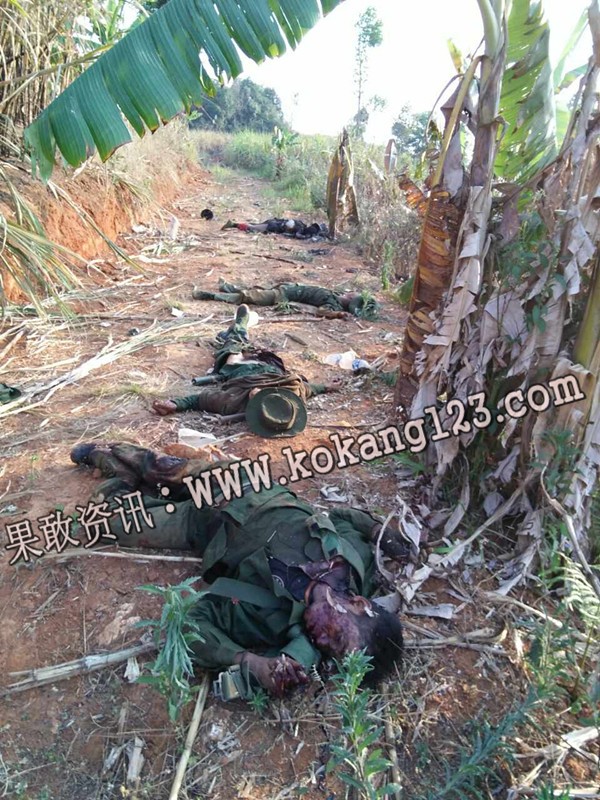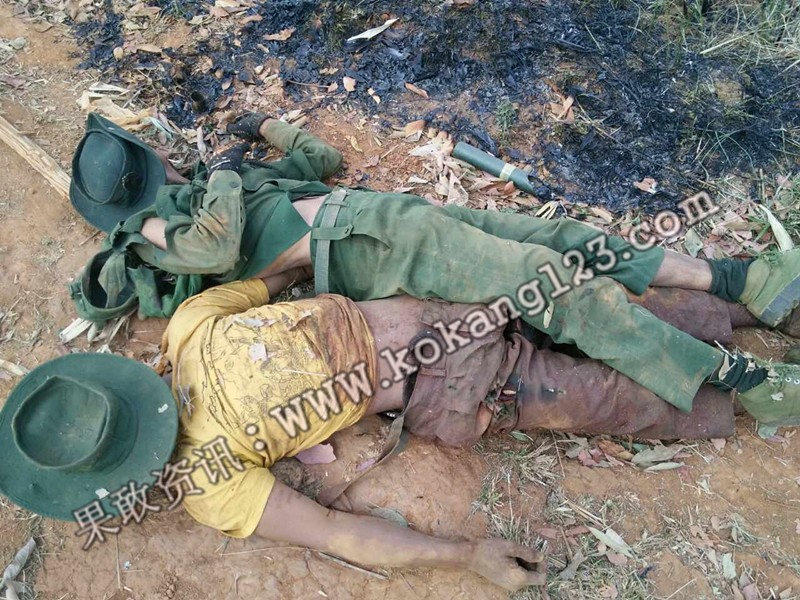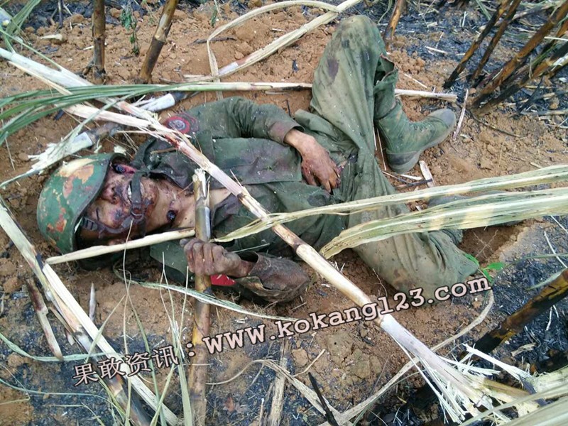 果敢资讯网3月18日消息:昨天早上政府军对扣塘山驻地的果敢同盟军发动猛烈攻击,冲锋波次不下七次,直至下午黄昏时分,政府军才从前线辙了回来,转而用重炮轰击。此次扣塘山战役是自2月9日果敢战事爆发以来最为激烈、残酷的一战。同盟军士兵阵亡2人,负伤11人,其中有两名重伤。政府军伤亡人数也是自战事爆发以来最多的一次,受伤人数不下百人,据在逃难的民众传言,他们看到政府军在回撤的时候,看到一车又一车的政府军伤兵往米线沟司令部运去。今天早上同盟军某连单是在打扫扣塘山小洼子战场时,不超过20平米的战场就发现政府军尸体13具,此次打扫战场,单是该连就发现政府军士兵尸体27具。另外有滚弄百姓目睹缅军两车尸体拉往滚弄大江附近掩埋,粗略估计至少还有70具缅军尸体遗留在战场。