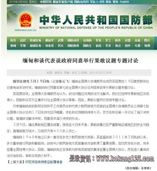 果敢资讯网3月20日据《新华社》消息:3月19日电(记者张云飞)缅甸全国停火协调委员会成员吴昆奥甘19日接受新华社记者电话采访时说,缅甸政府已同意在第七轮全国停火协议谈判结束后举行果敢议题专题讨论。