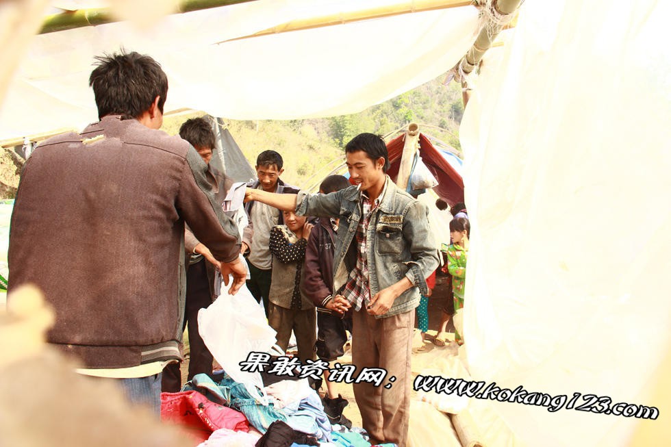 难民营里正在分发志愿者募捐的旧衣服。 (来自:腾讯图片)