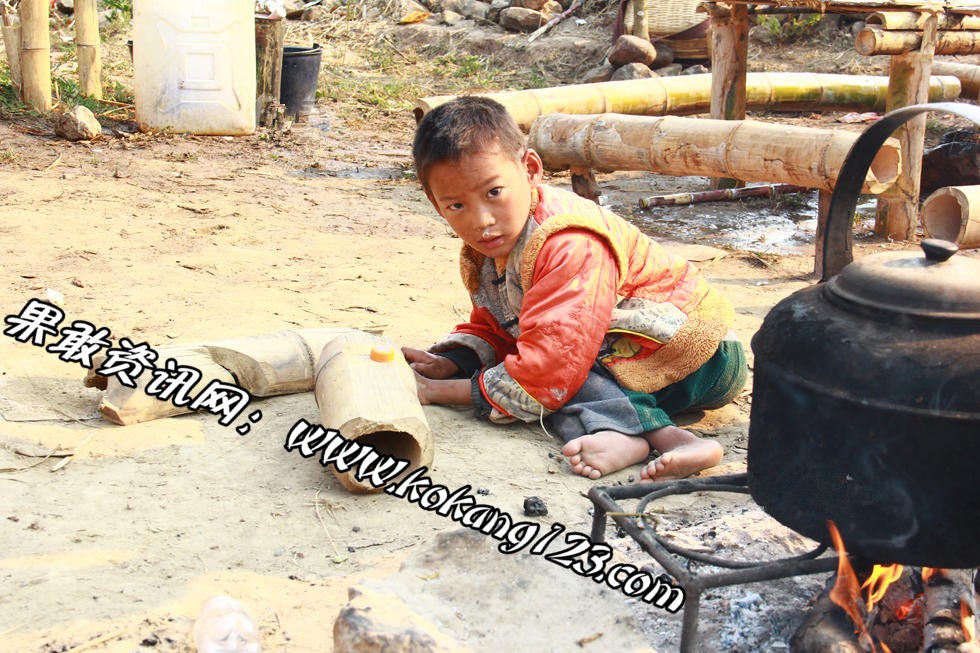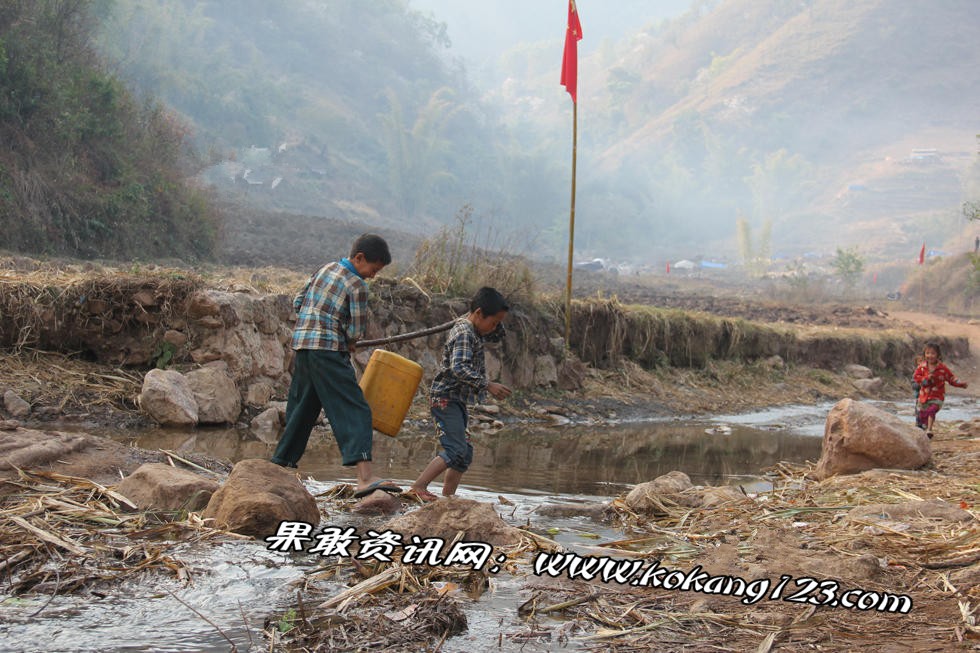小孩从河里取水饮用。 (来自:腾讯图片)