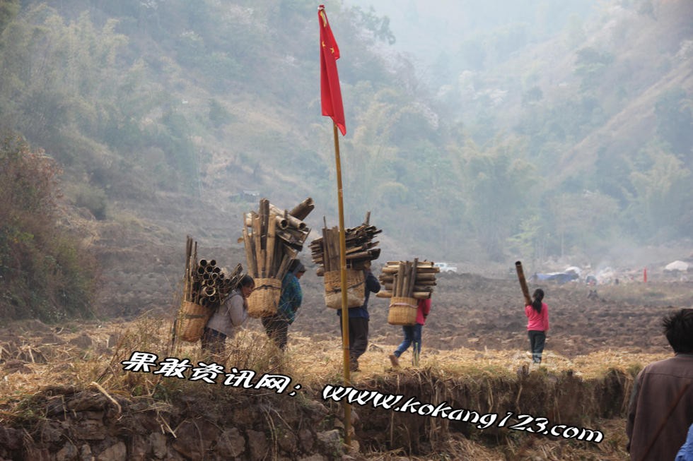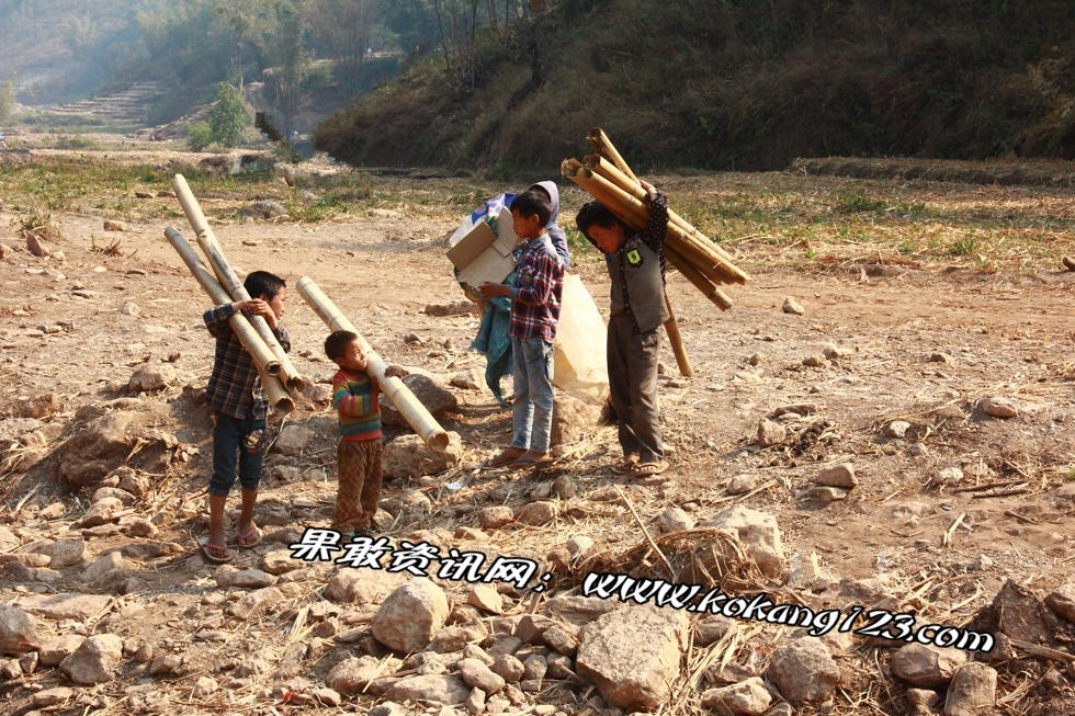 一家老小从山上背回的竹子,用来做饭取暖。 (来自:腾讯图片)