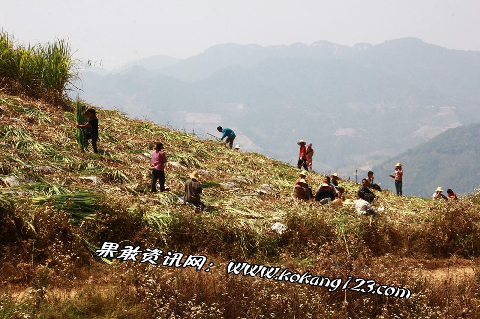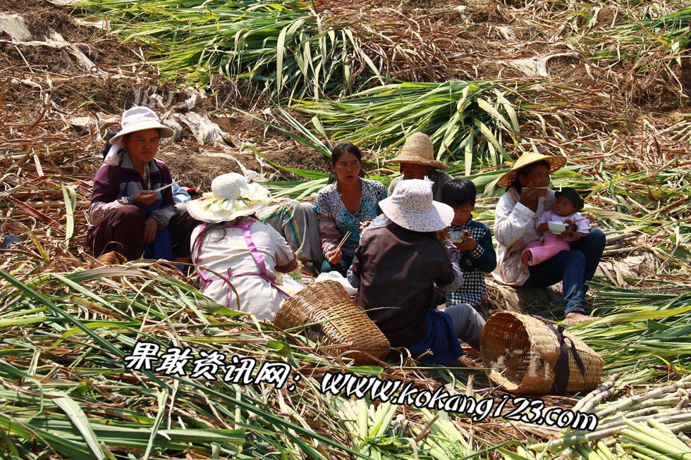 逃难的果敢难民给中国农民打工,每砍一捆甘蔗可以赚到1.5元,熟练的工人一天可以砍30捆左右。 (来自:腾讯图片)