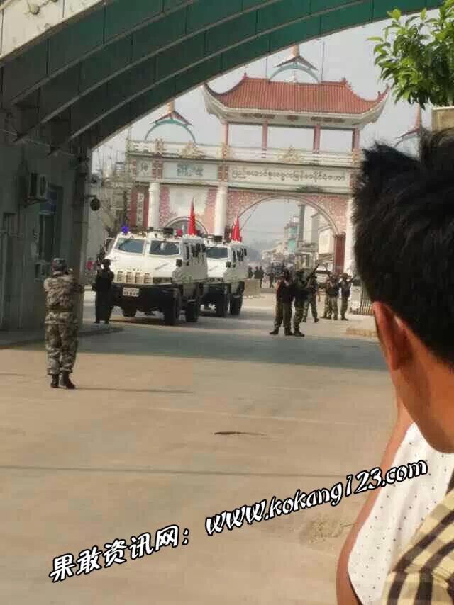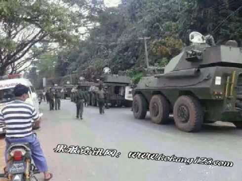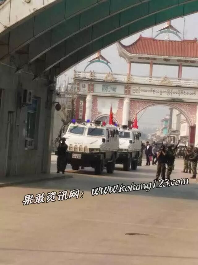 据传言,2月24日早上,缅甸政府军从腊戌市途经滚弄大举增兵果敢地区,其中有6X6装甲战车和俄罗斯制8X8BTR-90装甲战车各数辆。同时也有步兵车辆。更有传言,昨天早上10点40分许,有缅甸政府官员从南伞国门进入中国一侧,这一天南伞县城气氛也特别紧张,南伞街上武警全城戒备。
