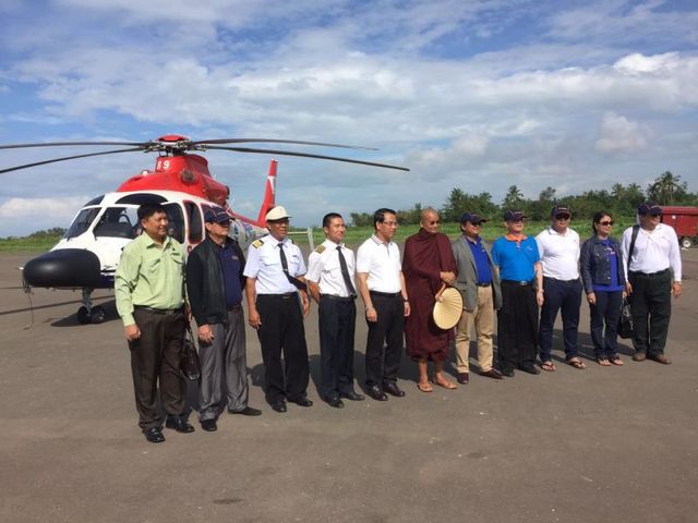 图片新闻:缅甸大和尚乘中信集团直升机巡逻若开灾情
