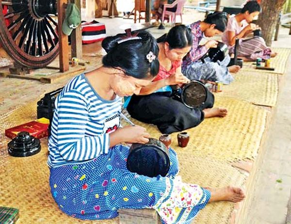 缅甸传统漆器手工业,在12世纪、13世纪时就已享誉于蒲甘王朝,在阿奴律陀大帝(King Anawratha)时代该手工业就已发展得非常成熟,现在则已成为传统的手工业文化遗产了。国外旅客们进入蒲甘地区时除了欣赏那有形的文物遗产——金黄色的佛塔建筑外,对非物质的文化遗产——手工艺品的熟练的技术也非常欣赏,作为旅游纪念品也经常踊跃购买这些手工艺品漆器。