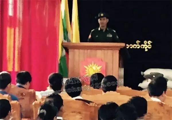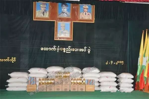 缅甸东北军区司令翁索少将给部分回家的果敢难民发放生活物资