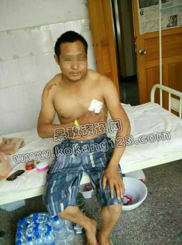 果敢资讯网4月5日最新消息:近期家住红石头河李老二得到消息,中国南伞糖厂与老缅已经谈好了,果敢10天内暂不打仗,民众可以回家砍甘蔗了。在得到这样的消息后,李老二一个人经常在白天时间里回家务农,在4月的某日,正在采茶的李老二突然被十多个政府军围着,政府军或许是不会讲汉话吧,不问原由,直接往他的胸口左侧桶了一刀。李老二装死后,政府军士兵“弃尸”而去,得以捡回一条命,现在正在南伞一家医院接受治疗。(为了当事人的安全,现暂不对其具体位置进行说明。)