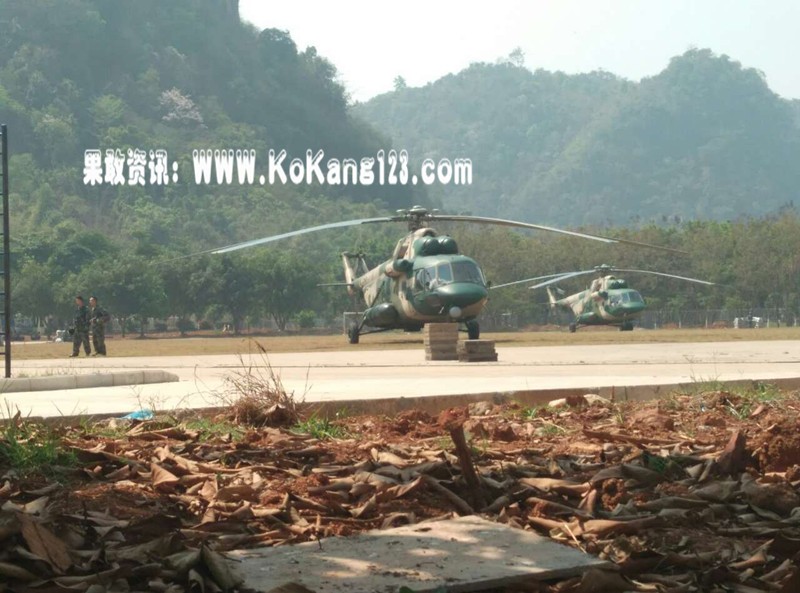 为应对果敢局势的持续恶化,避免人民生命产再次遭受损失,中国人民解放军加强了对边境地区的巡逻力度。今天早晨东边的太阳还没有升声起,解放军两架武装直升机己飞行在镇康县南伞镇的上空。今天中午,解放军也对边境线一带的驻军进行了人员和武器装备的补充。本报联系红岩街子的罗先生,他说从街子头远远地就可以看到很多解放军在中国一侧进行训练和架设装备。