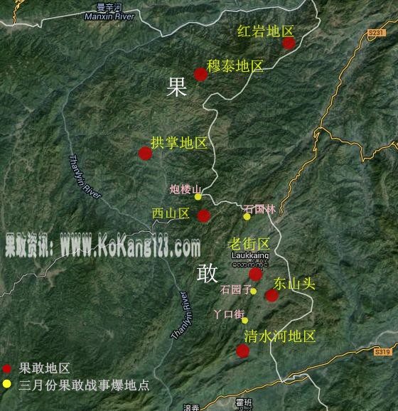 果敢资讯网3月16日消息:今天早上北京时间8点许,果敢东山头帕卡村、扣塘村等地爆发激烈战斗。政府军先是用重炮轰击驻地的同盟军,然后再是发动步兵攻击。政府军在第一波的攻击中伤亡残重,退下阵线,再次用重炮轰击。10点40分许,政府军再次发动第二波步兵冲锋。11点许,同盟军某连火速增援扣塘防线,东城、南湖塘等地的政府军也正在往扣塘的方向靠拢。截至下午3点扣塘战斗仍在继续。