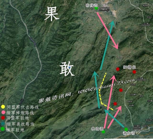 果敢资讯网3月26日消息:昨天下午至今天早上,缅甸政府军装甲车增援部队己陆续来到了清水河。下午北京时间2点30分许,政府军为其增援部队顺利到达老街区的目的,先是用重炮从水沟洼附近制高点对同盟军驻地进行将近两个小时的炮袭,同时又有小股部队从老街区向扣塘方向进行袭扰,从而使埋伏在芭蕉河至丫口街一线的同盟军不能对政府军增援车队进行高效打击。4点许,战斗仍在进行,政府军部分车队驶至石园子。